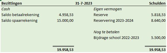 Het beschikbare budget voor een schooljaar is afkomstig uit de inkomsten uit het voorgaande boekjaar, plus het resterend (ongebruikte) budget dat is toegewezen aan het voorgaande schooljaar.