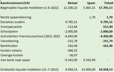 Het bestuur van Stichting Franciscusfonds kan besluiten om budget aan een schooljaar toe te wijzen vanuit de beschikbare reserve.